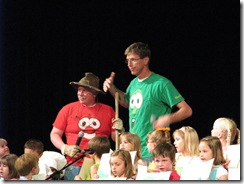 After a Track filled weekend, Tuesday started the music programs first Alan’s and then Collin and Erin’s. Fortunately Mrs. Anthony does a nice job. Alan was kind of cranky about the program, but once he got his “show face” on he seemed to have fun.